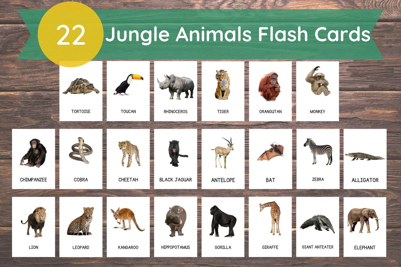 – 22 Jungle Animals Cards PDF Format 3×3″