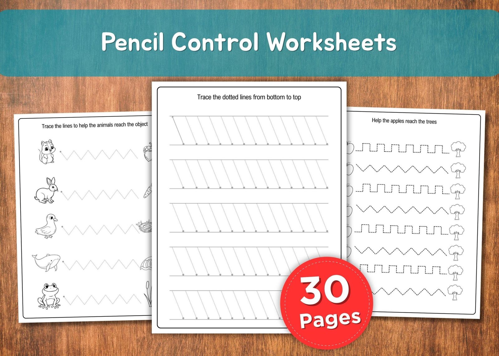 30 Pencil Control Worksheets | Preschool Kindergarten Tracing Lines | Fine Motor Skills Practice | Early Learning Printables