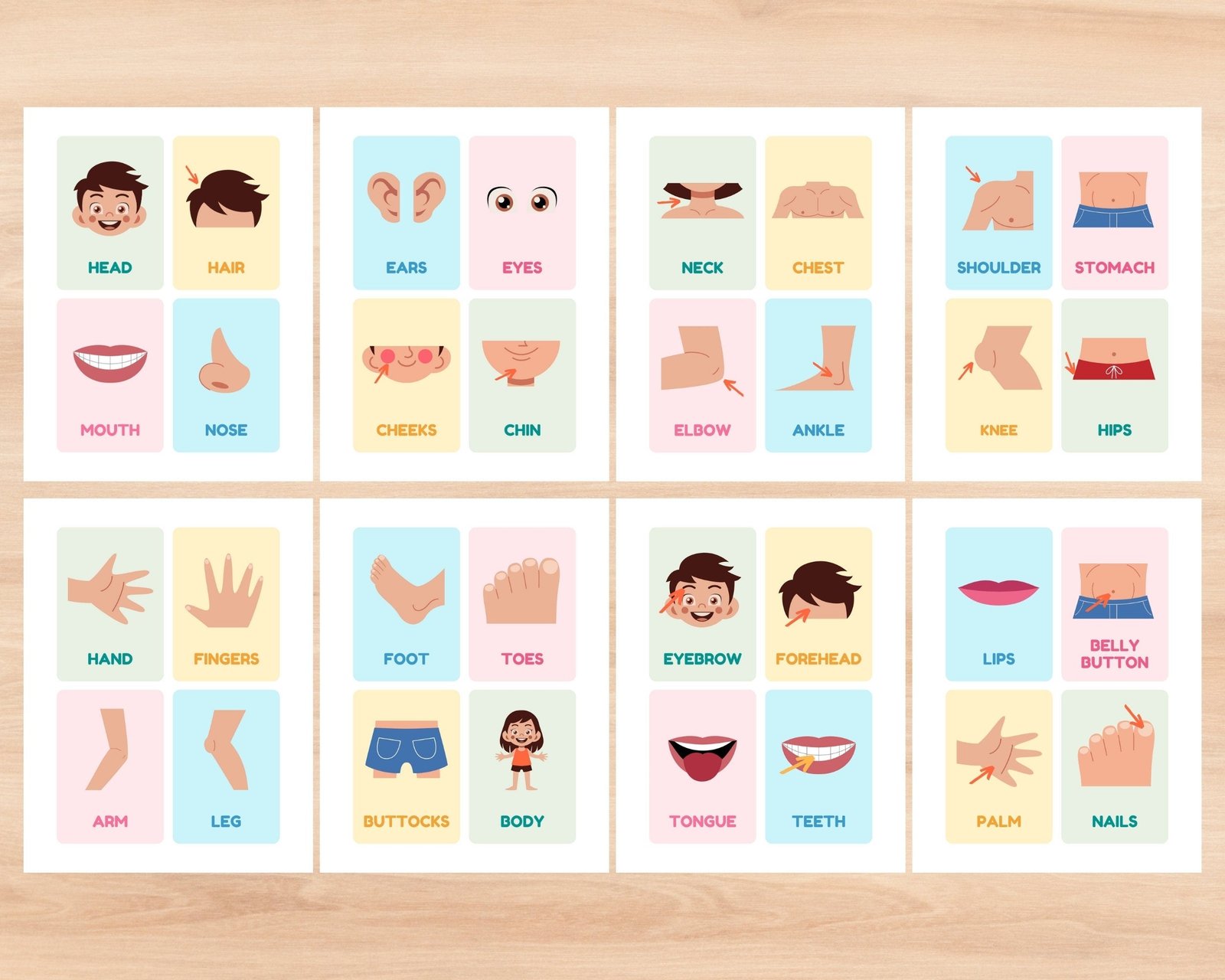32 Body Parts Flashcards, Printable Montessori Flash Cards,Pre-School Cards Learning, Educational Back to School Nomenclature Activity Toys