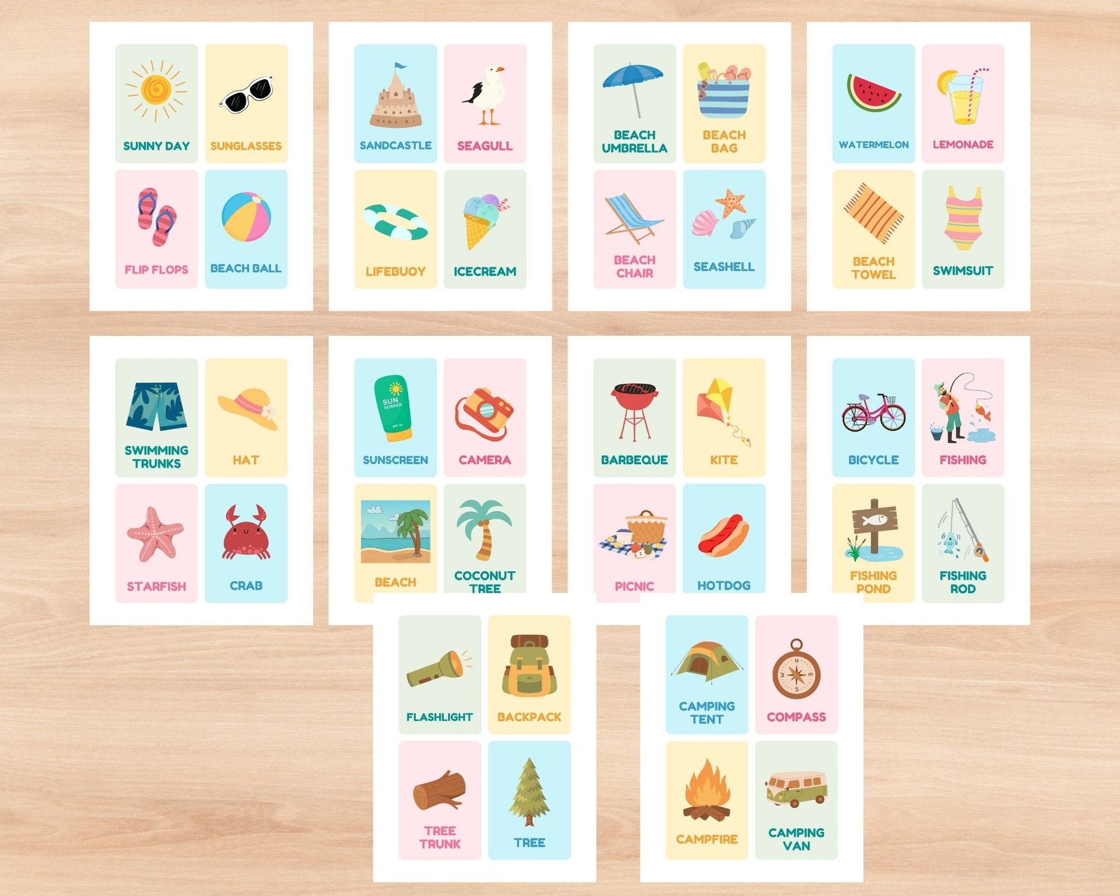 40 Summer Flashcards, Summer Vocabulary Nature Cards, Printable Montessori Flash Cards, Pre-School Seasons Activity, Beach Camping Learning