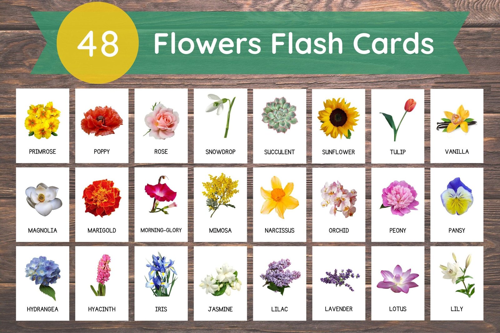 Ignite curiosity and cultivate a love for nature with our 48 Flowers Flashcards. Order your instant download today and embark on an educational journey filled with botanical beauty and discovery.