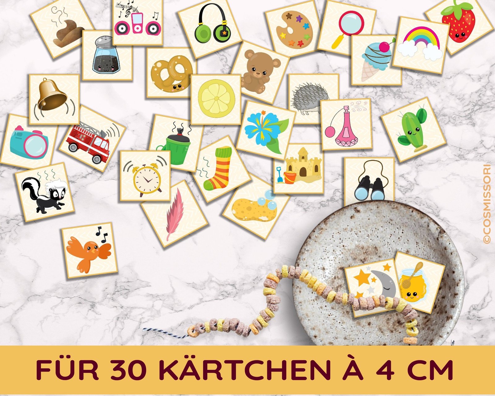 1. The material is printed out and the picture cards are cut out.