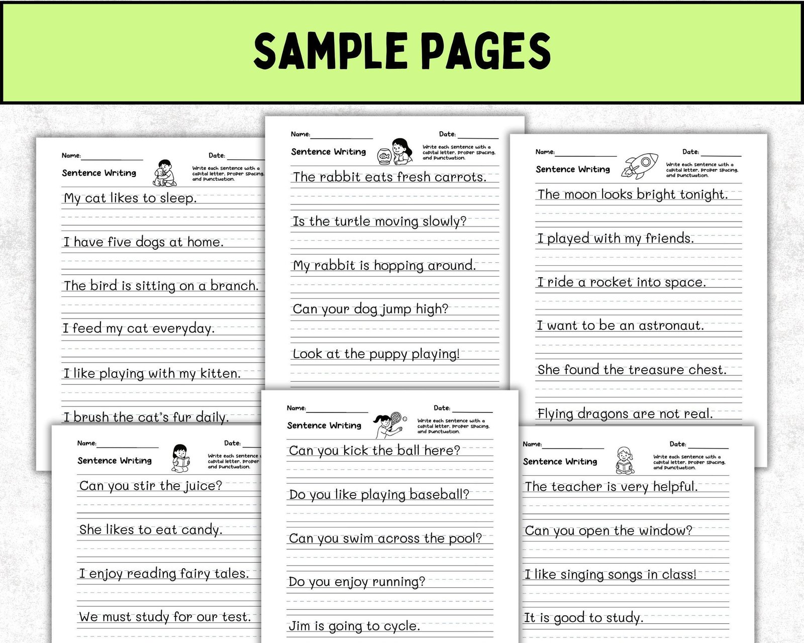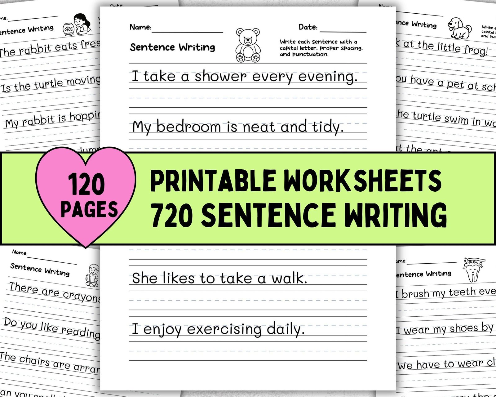 720 Write the Sentence Worksheets , Printable Copy Sentence Handwriting Practice, 1st-3rd Grade ELA, Sight Word Homeschool PDF, Morning Work