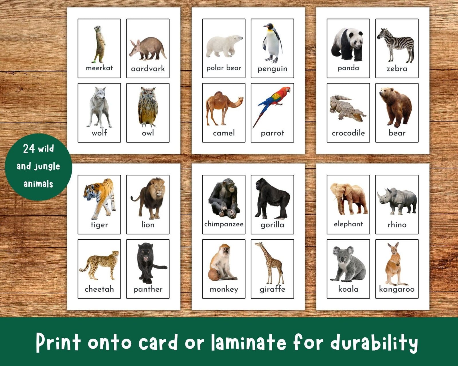 Animal Flash Cards, Pet Farm Animal Flashcards, Zoo Jungle Animals, Sea Creatures, Bugs Insects, Educational Printable, Toddler Flashcards