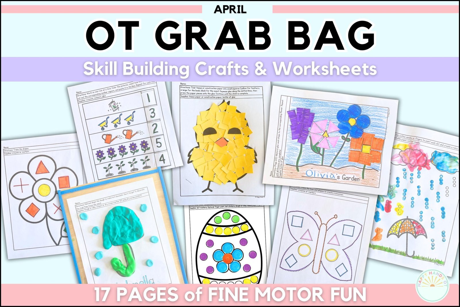 These “OT Grab Bag” worksheets are created to support at-home practice for any child working to develop fine motor skills, scissor skills, hand strength, pre-writing skills, sensory processing skills, and more. The no-prep worksheets make it possible for busy parents to reinforce the skills their child is practicing in their classroom or OT sessions.