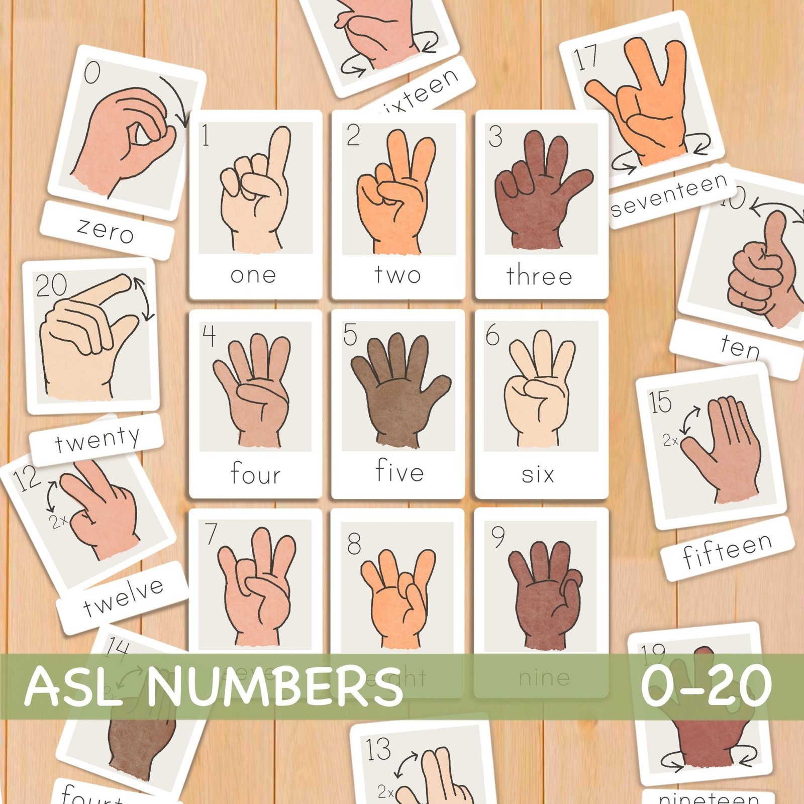 ASL Numbers Flash cards 0-20 American Sign Language Flashcards for Kids ASL Classroom Decor Printable Flashcards 3 Part Cards for Toddlers