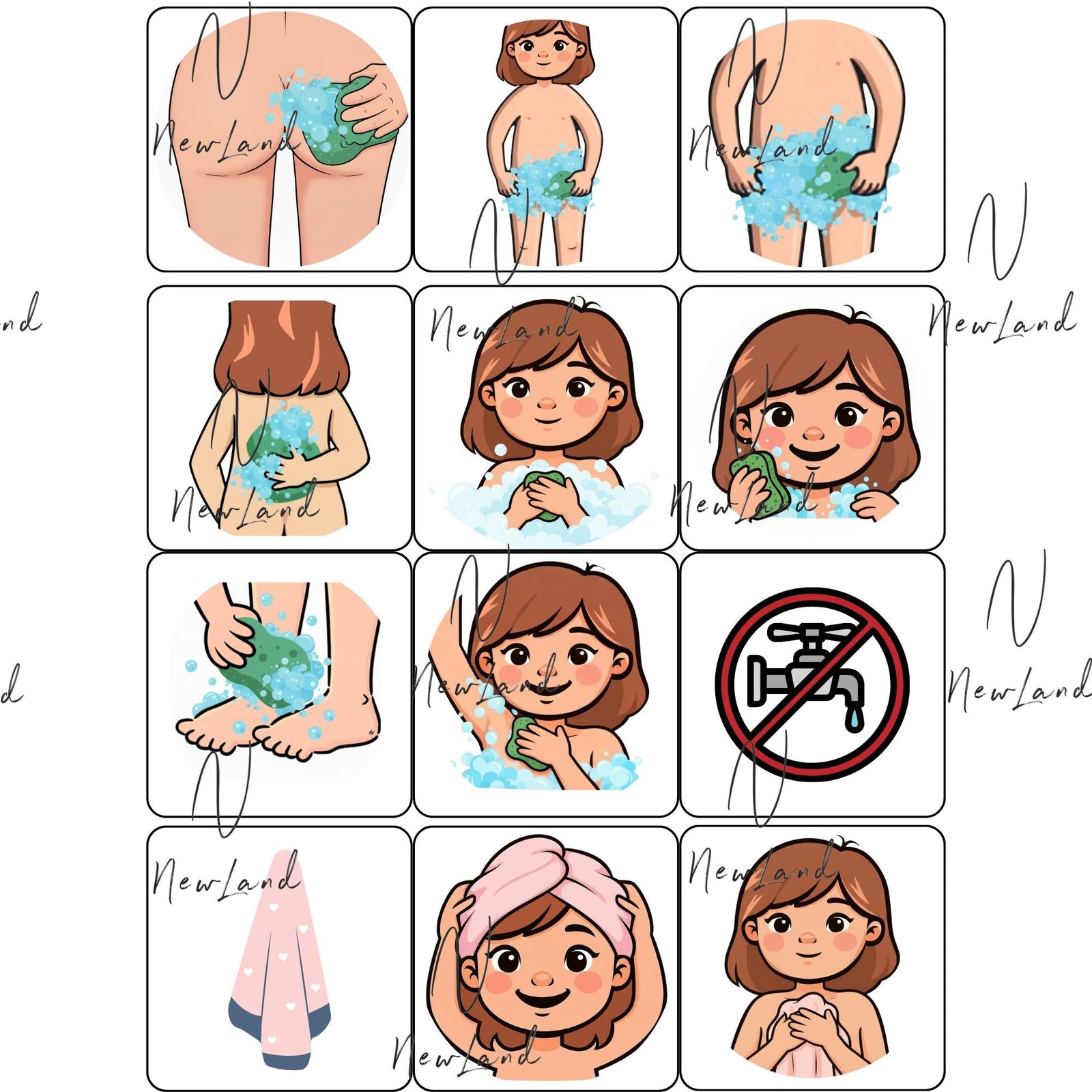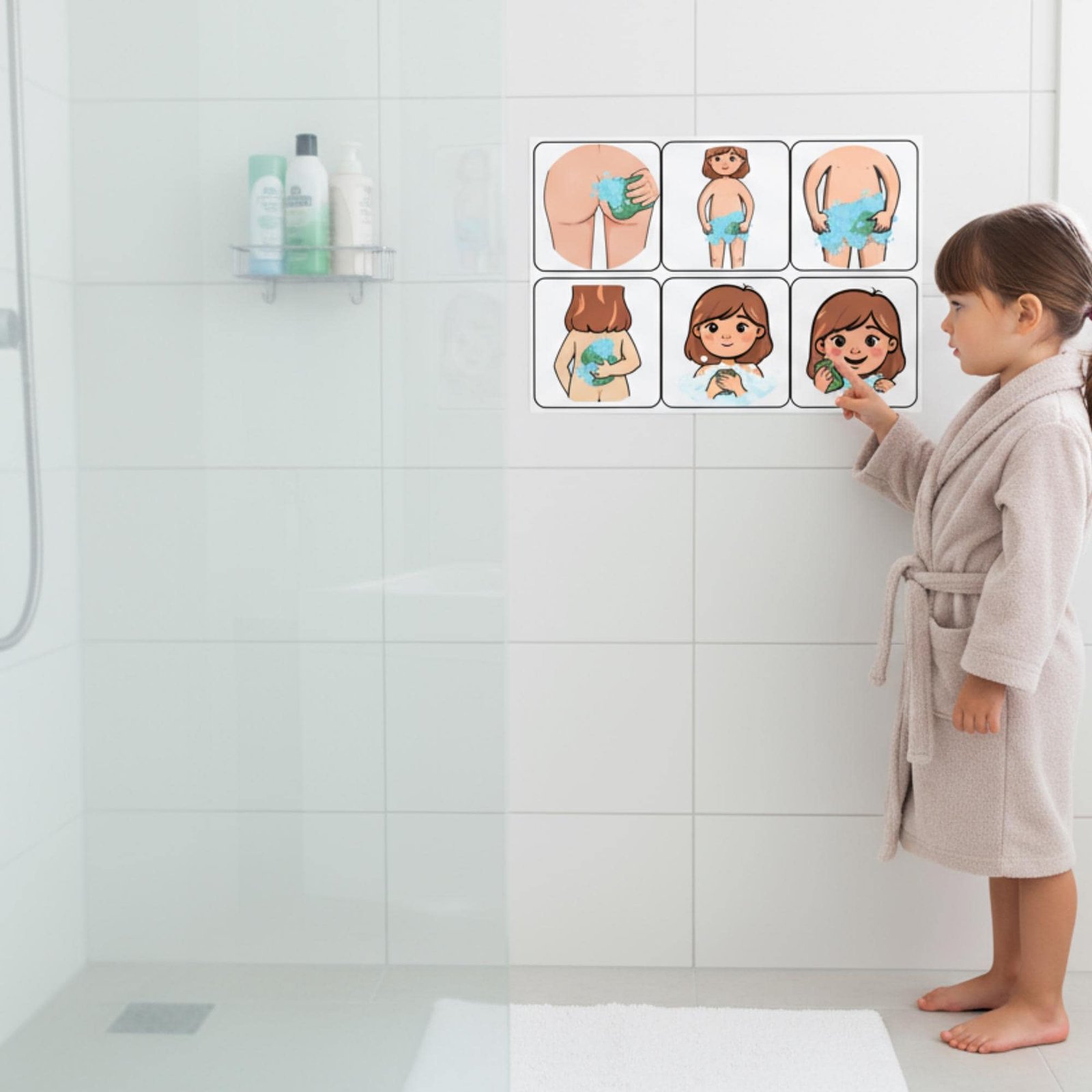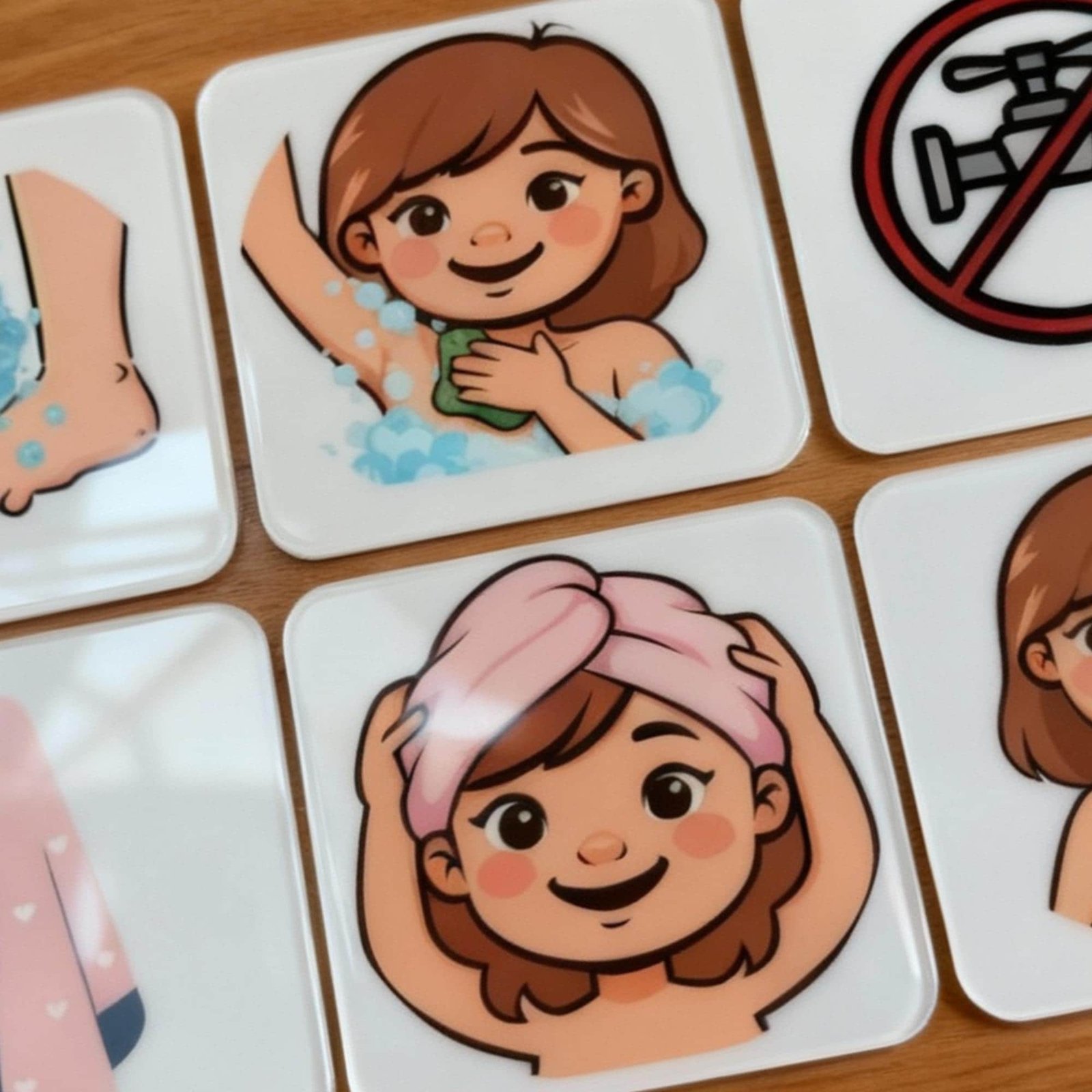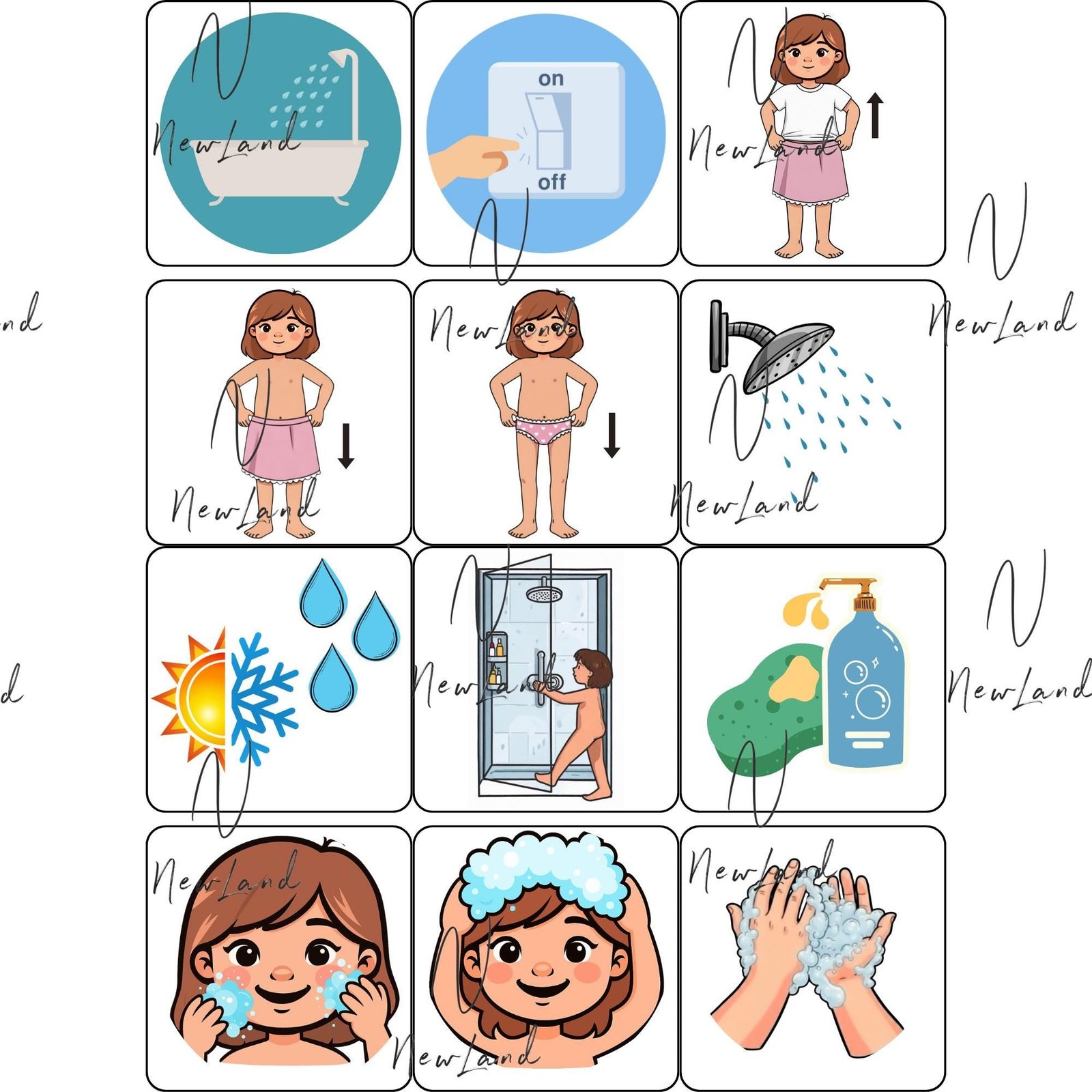 Autism Shower Routine Flashcards for Girls, AAC Communication Visuals (Editable PDF)