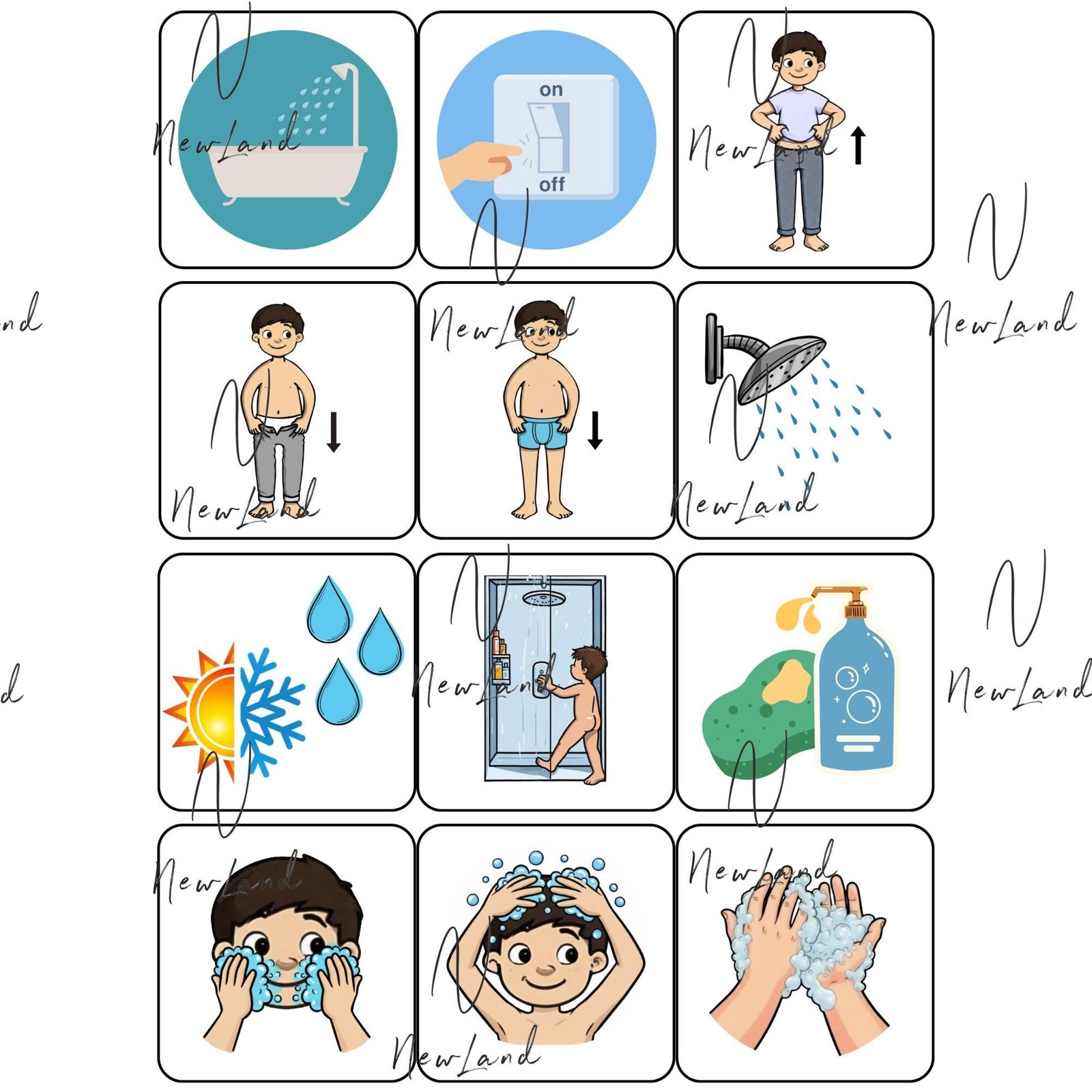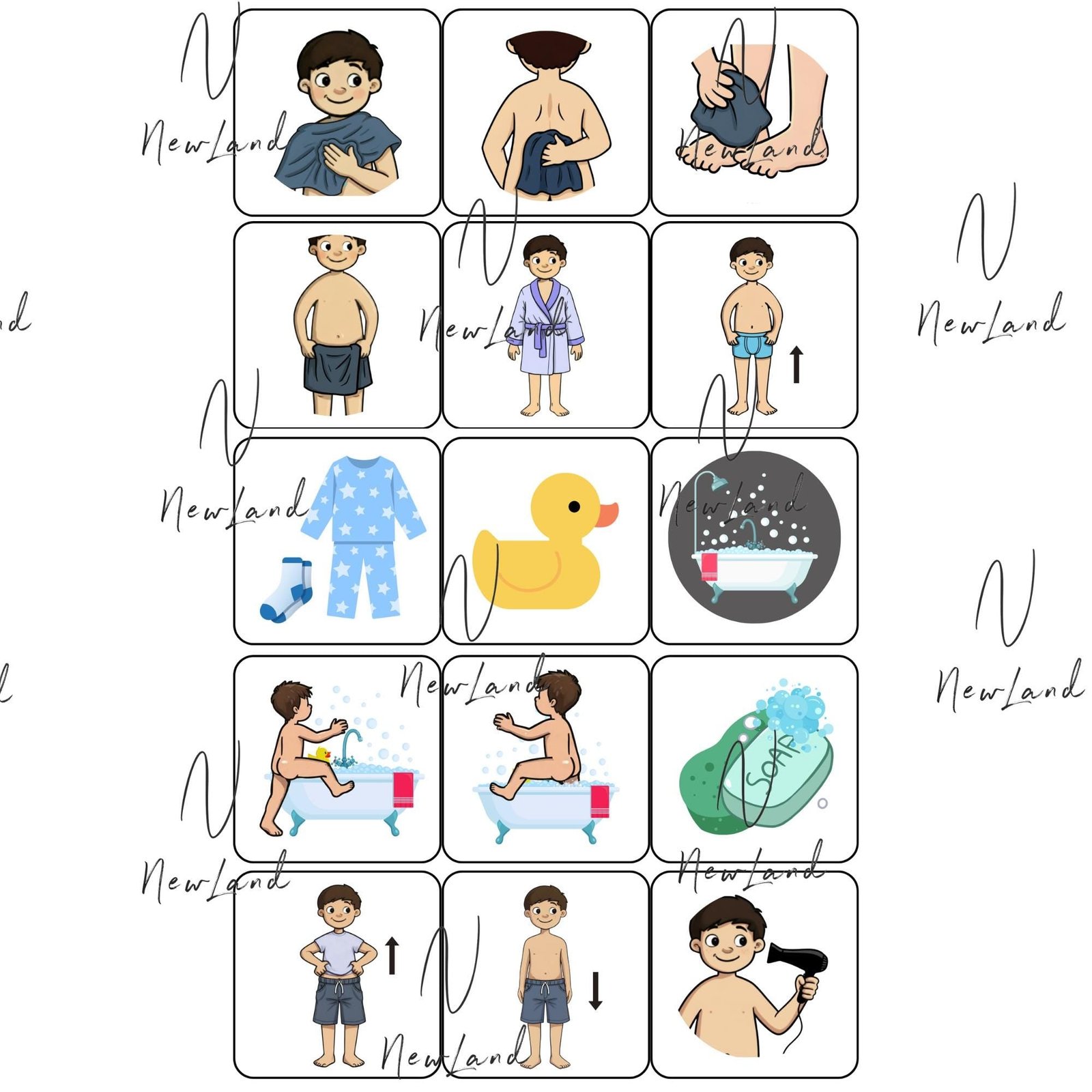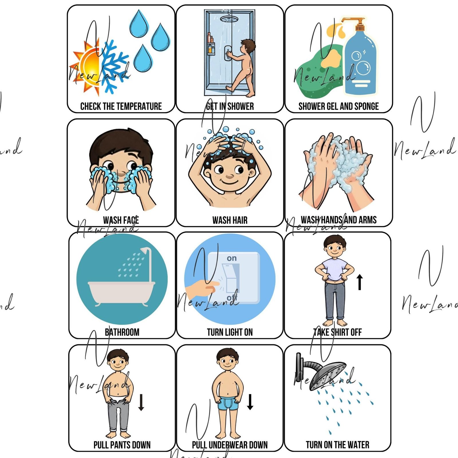 Autism Visual Schedule – Shower Sequnece for Boys (Printable Editable PDF Cards)