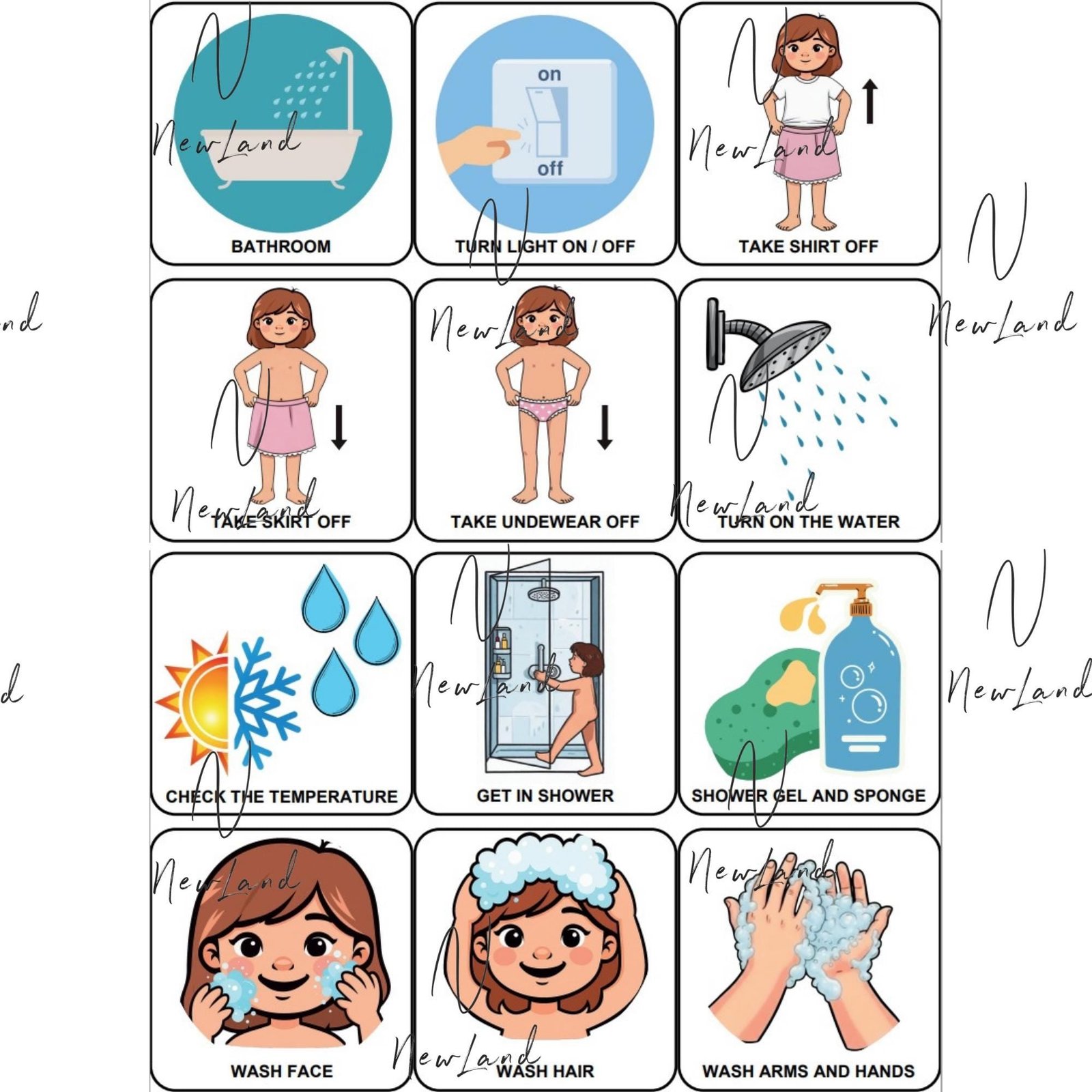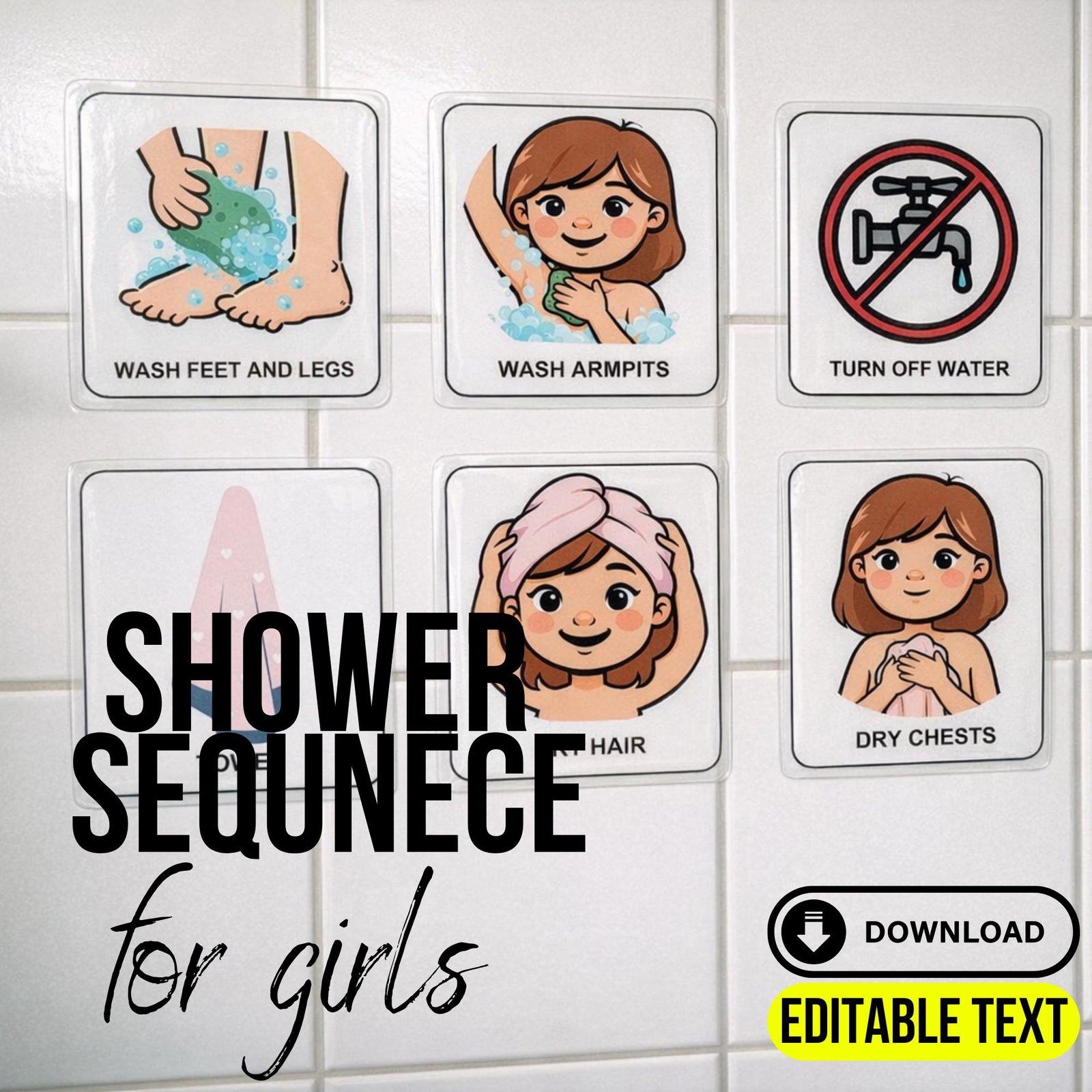 Autism Visual Schedule – Shower Sequnece for Girls (Printable Editable PDF Cards)