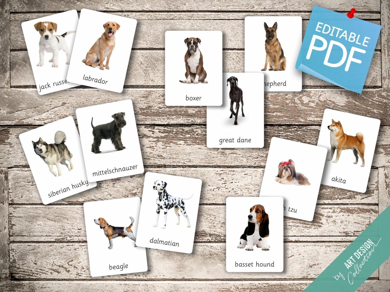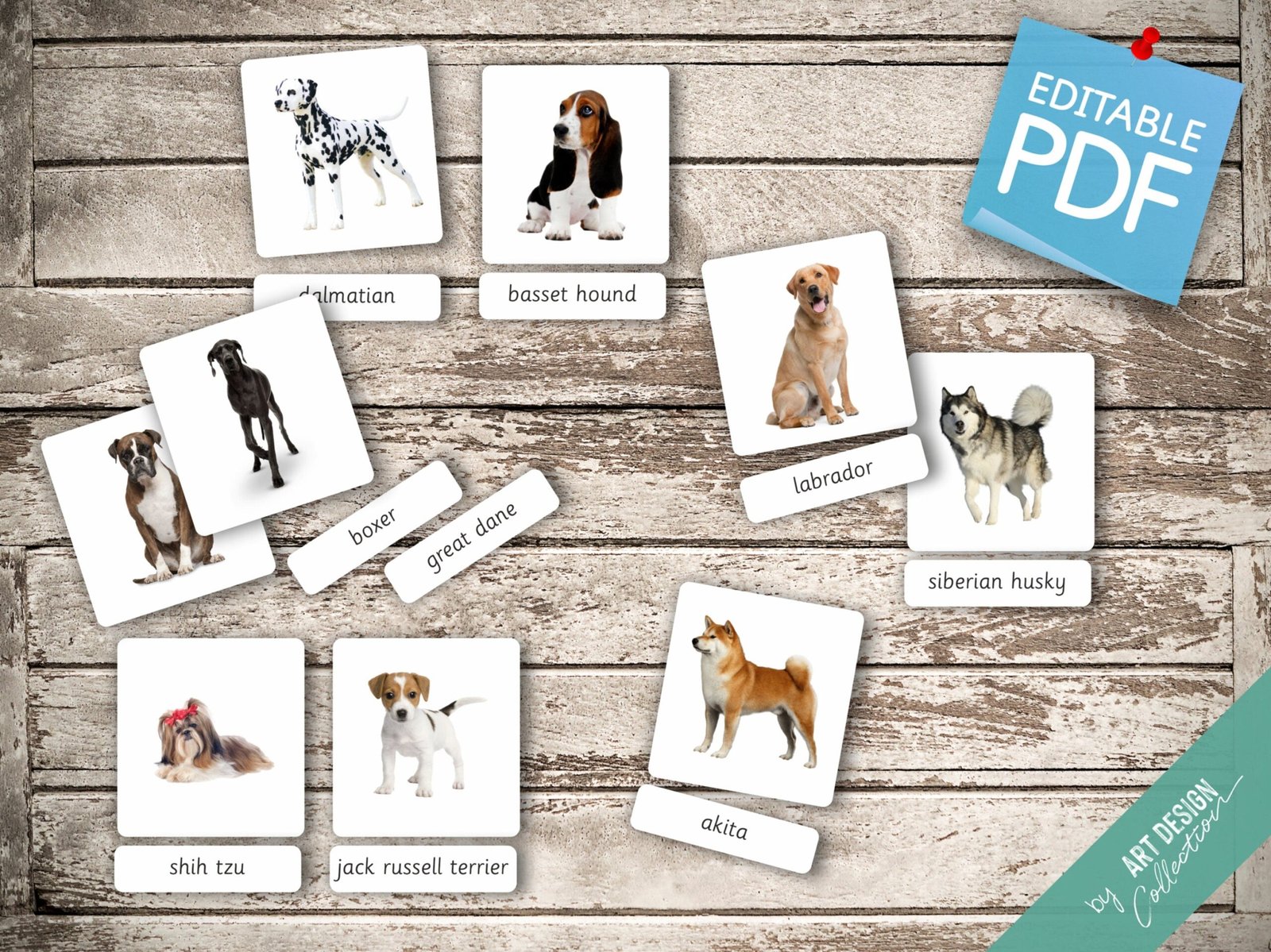 BREEDS OF DOG (real pictures) • 27 Editable Montessori Cards • Flash Cards Nomenclature FlashCards Pdf Printable Cards Preschool Toys