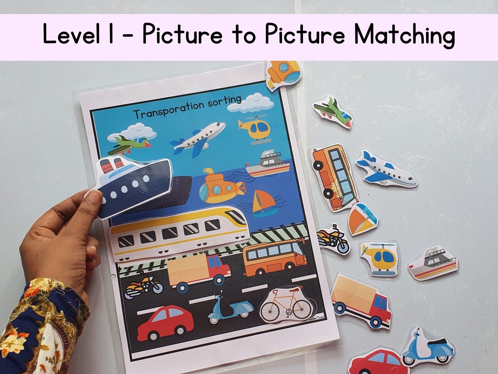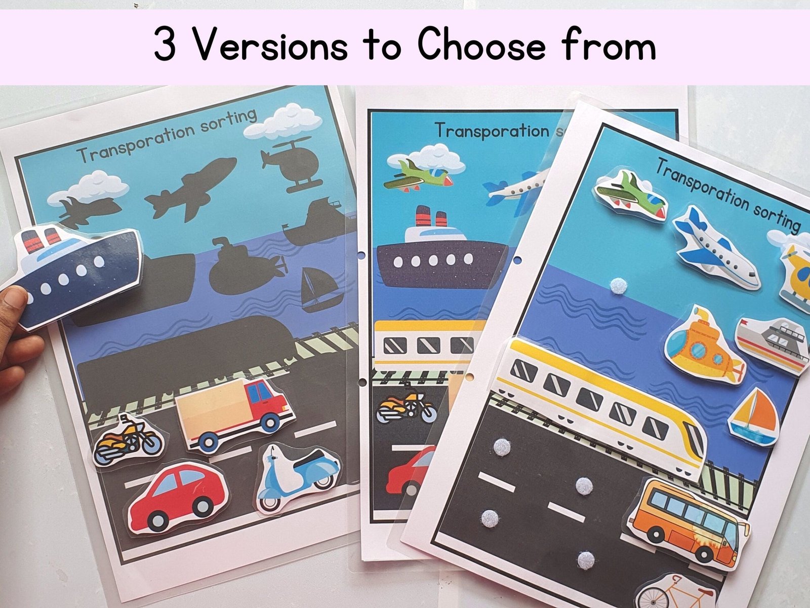 Busy Binder Activity, Transportation Sorting Activity, Homeschool Preschool curriculum,Toddler Busy Book, Toddler Worksheets,Transport sort land , air and Water