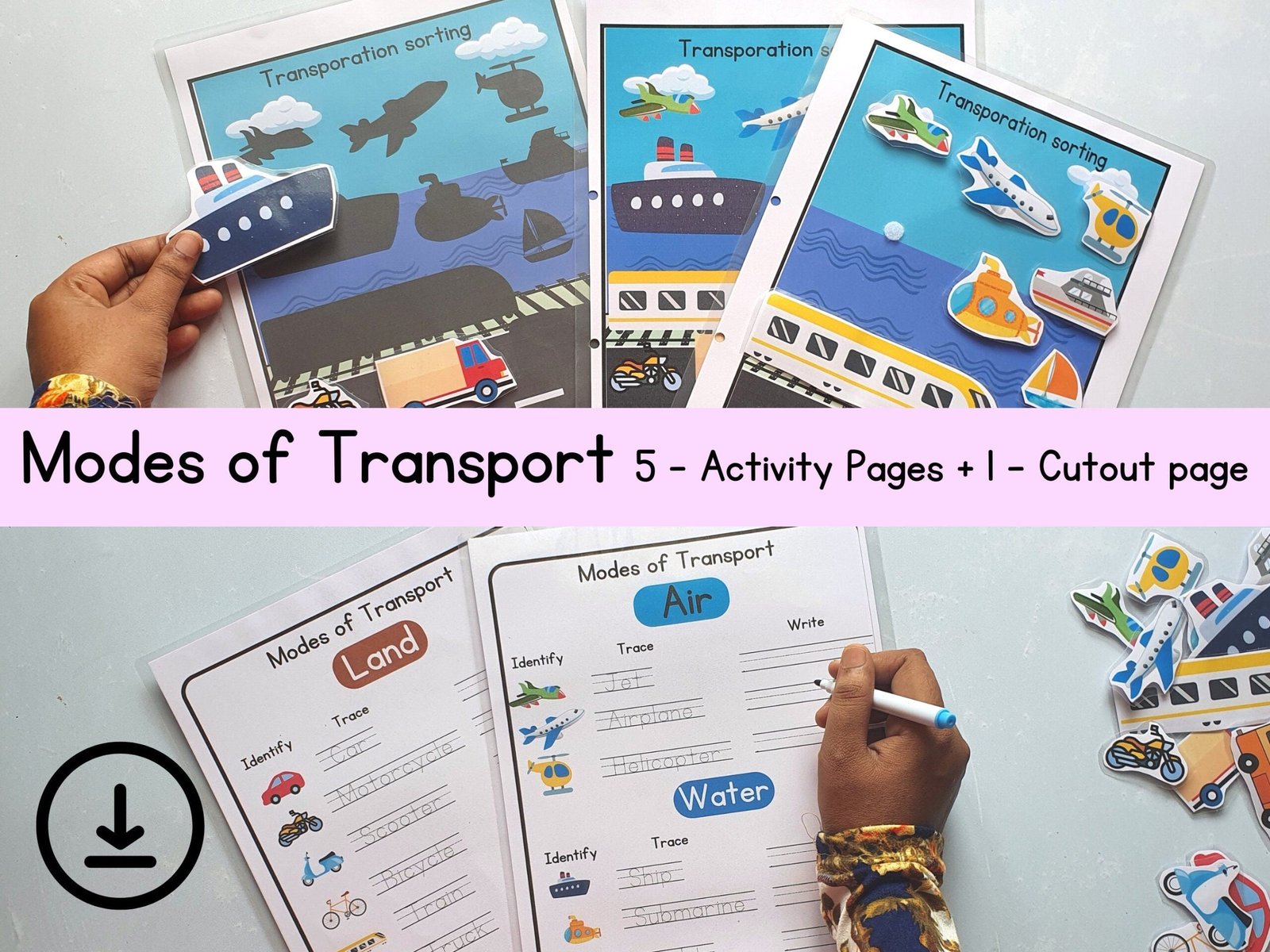 Add this Transportation Sorting Activity Pages to your Toddler’s busy Book and Help them Learn Every thing About All the modes of Transport