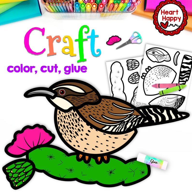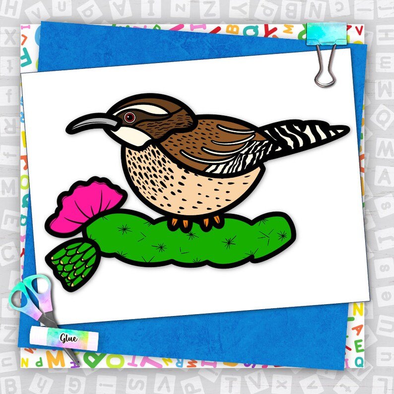 This sweet Cactus Wren Craft is LOW PREP – Just print, color, cut, glue! Great for bird lessons, habitat studies, and desert themed unit studies. Plus, as the state bird of Arizona, this craft makes a great addition to your 50 states and U.S. geography lessons.