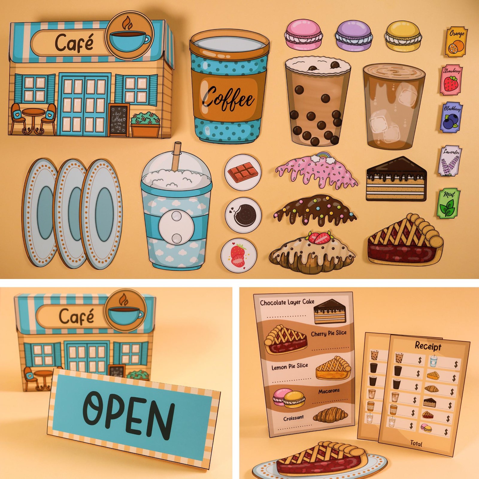 Cafe Kit Pretend Play – Printable DIY Children’s Activity, Fun Home Learning Craft, Educational, Homeschool, Digital Download, PDF