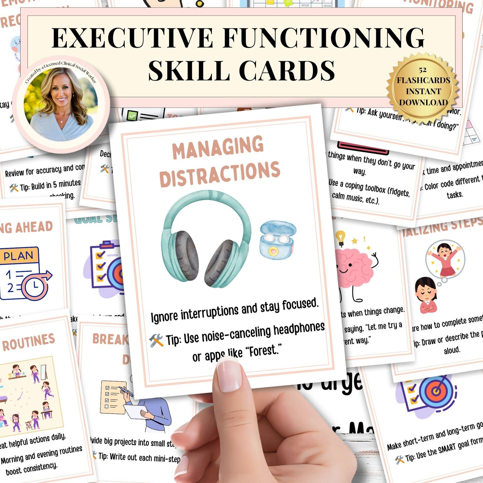 Executive Functioning Flashcards for Kids and Teens with ADHD Tools Therapy Worksheets Printable Coping Skills Cards Digital Download