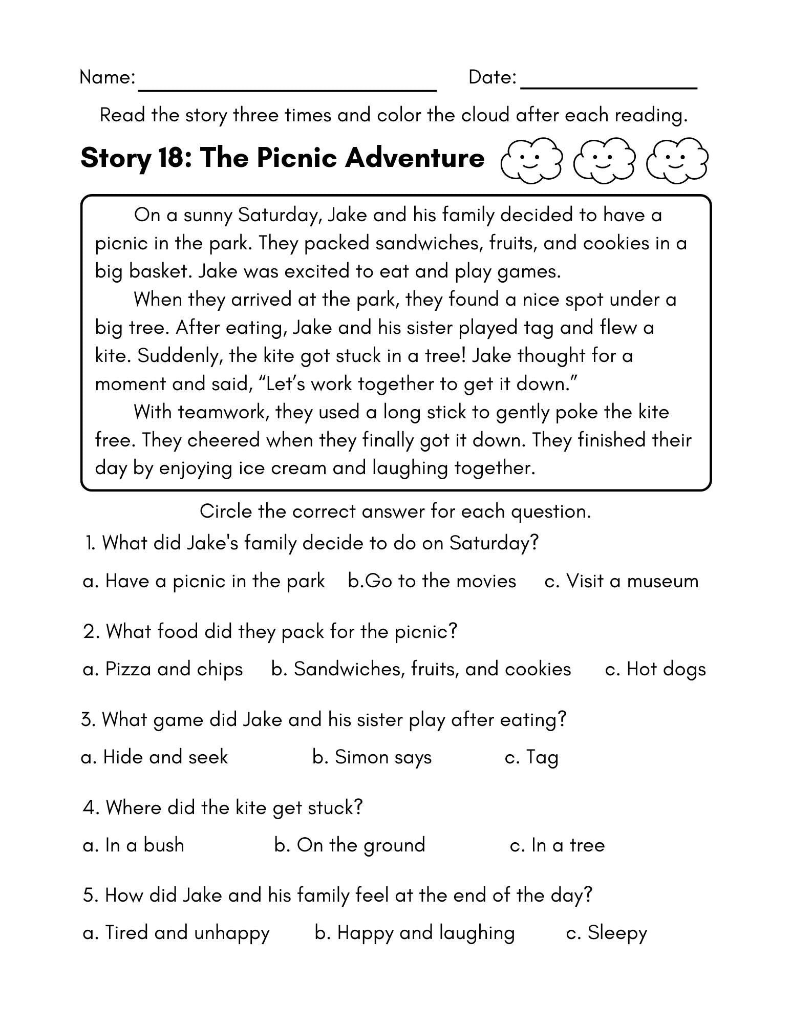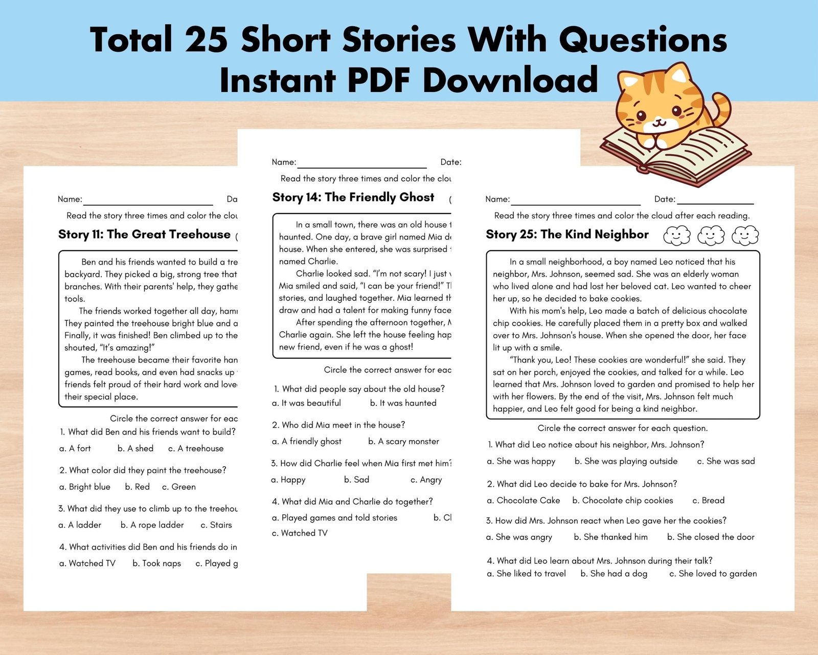 ✍️ 25 pages of fun short stories with questions to practice reading comprehension.