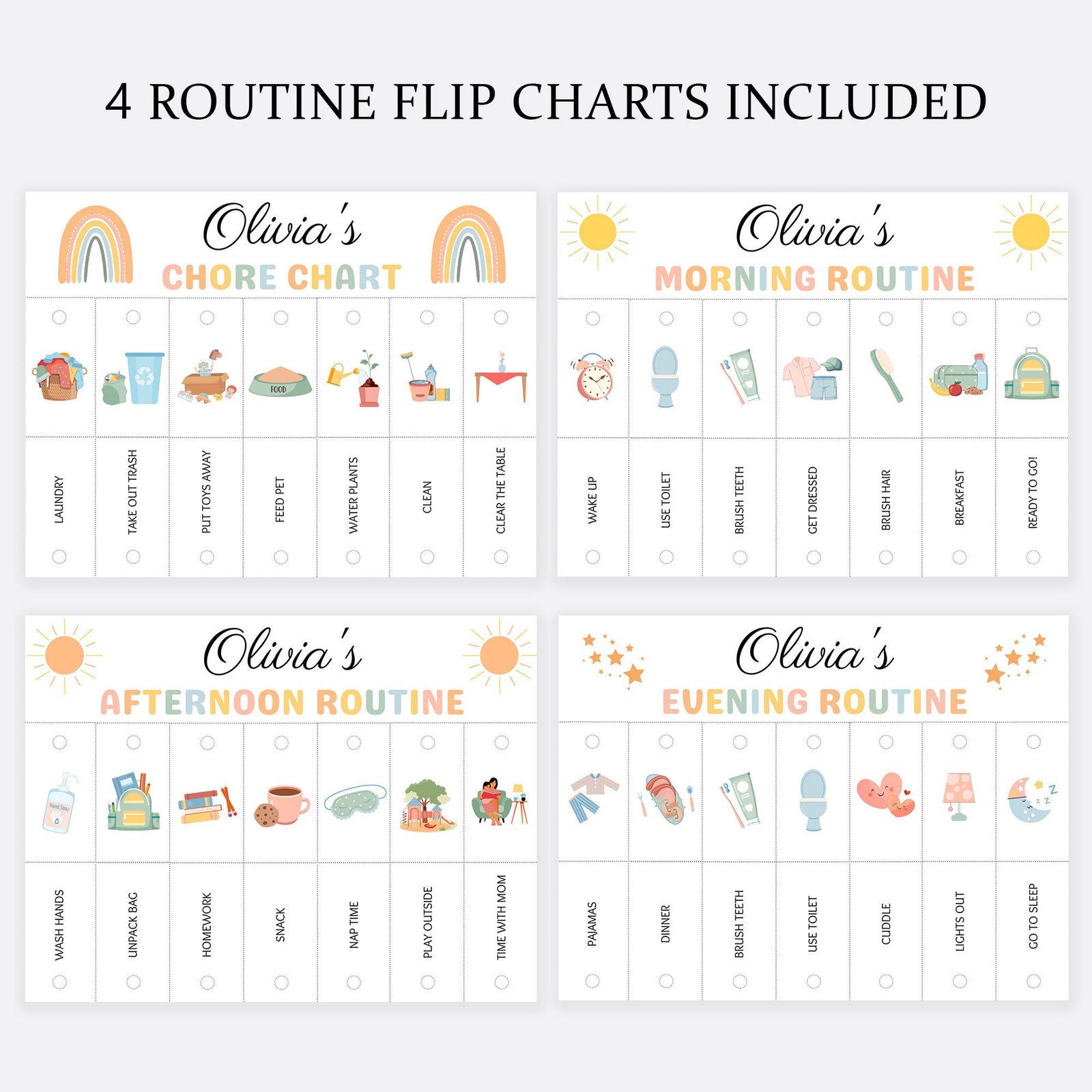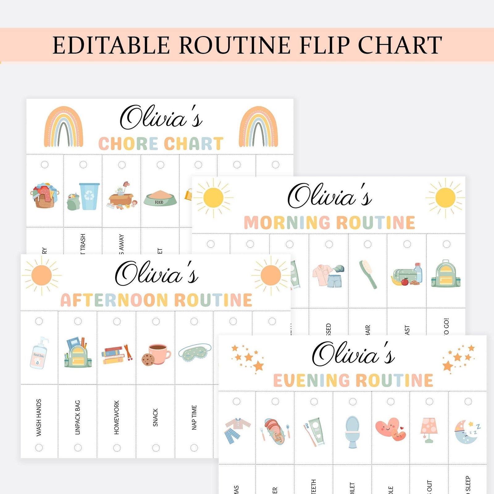 ★ Editable 4 flip charts: Morning | Evening | Afternoon | Chore Chart
