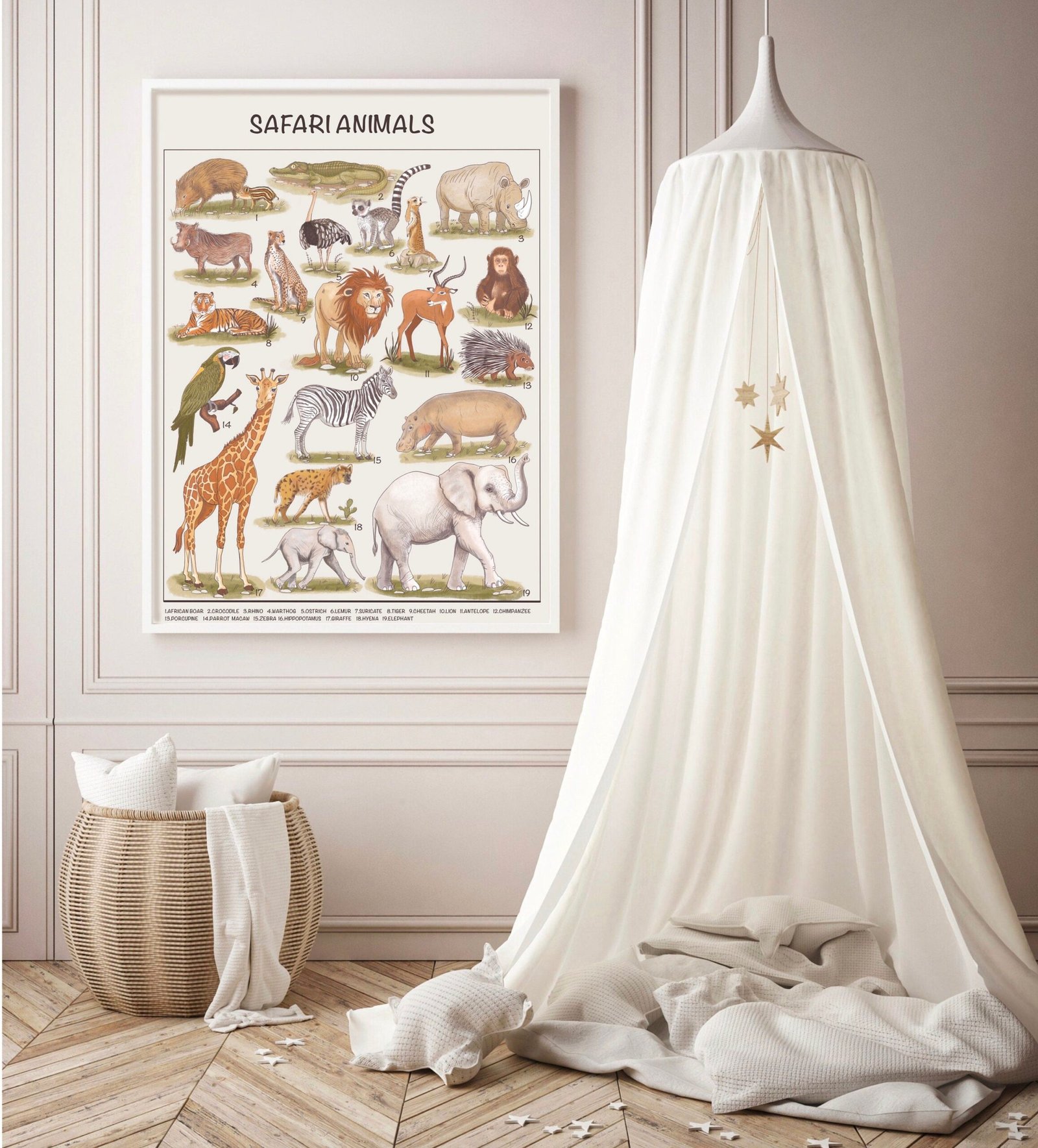 This safari animals poster – downloadable print assured to delight any classroom or nursery. Easily customisable to 20+ frame sizes and instantly accessible as a digital download for you to print at home, take to your local print shop or upload to a printing service and have them delivered to your door!