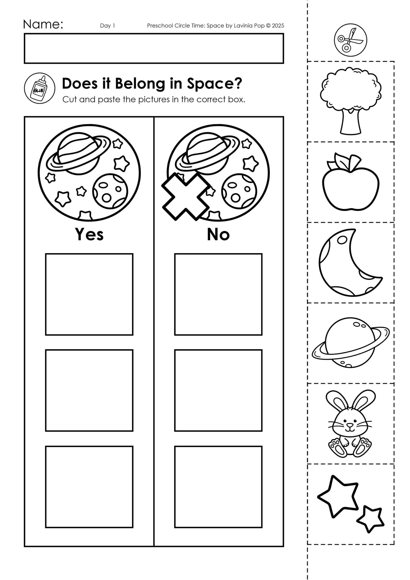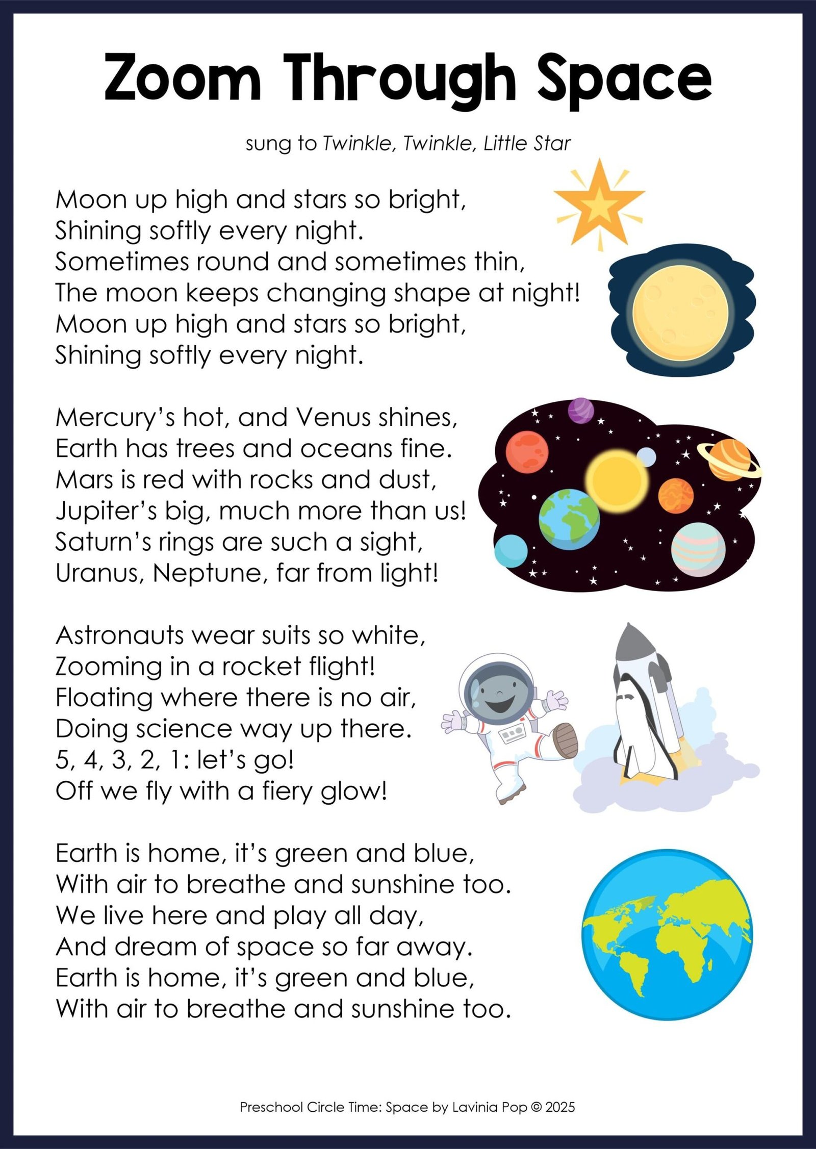 Space Preschool Theme Curriculum Printables | Preschool Circle Time Lessons & Activities