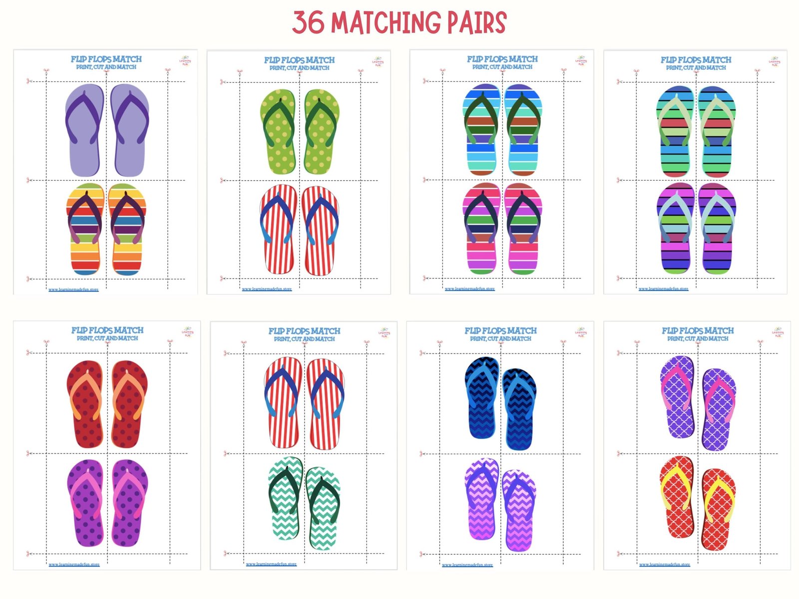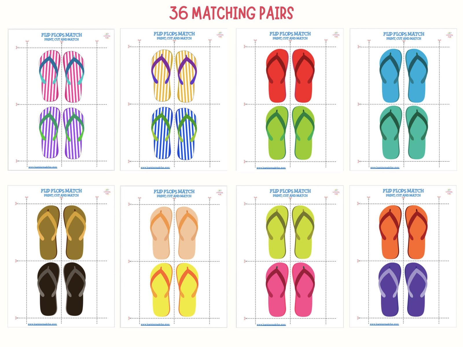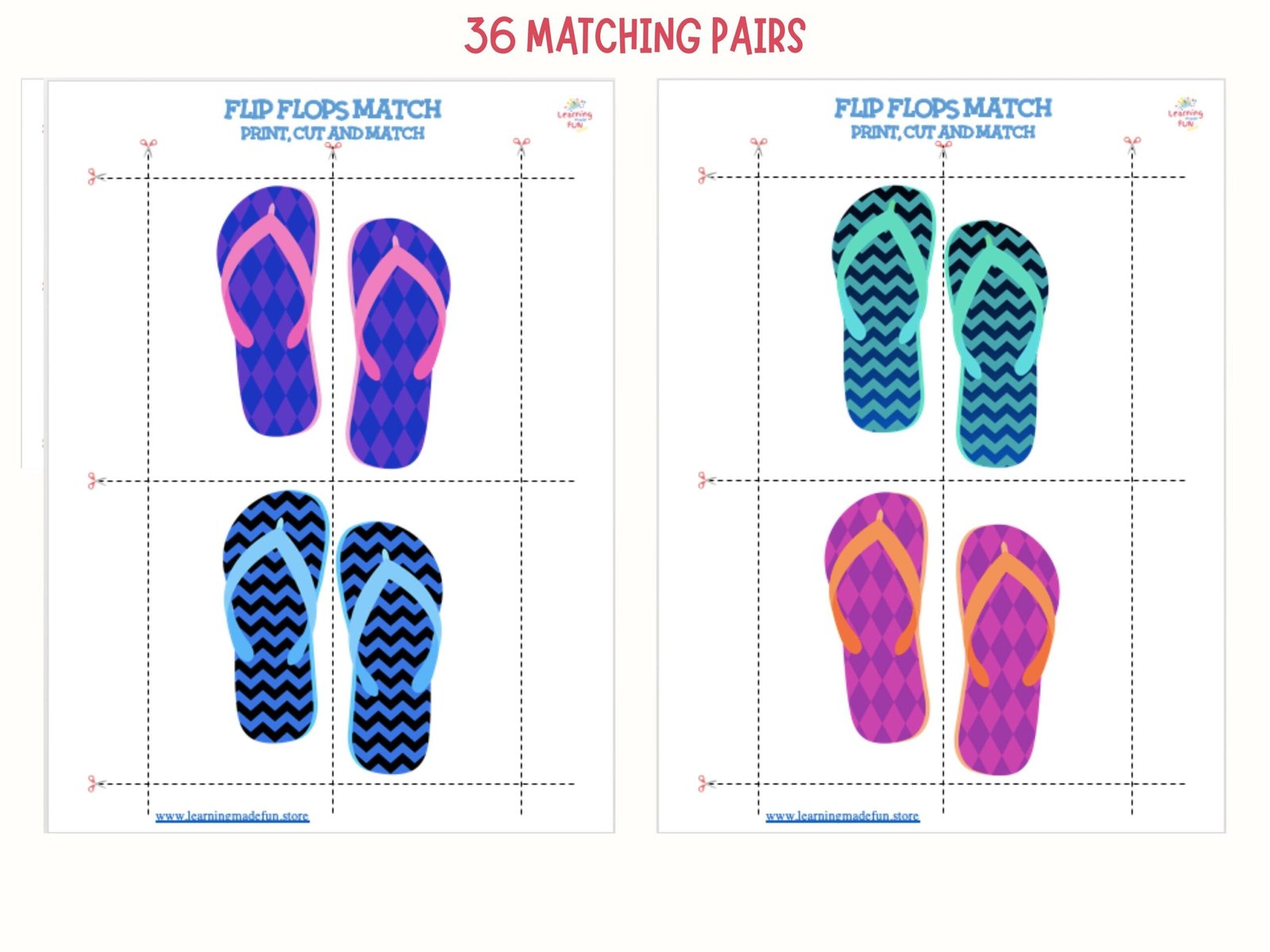 Summer Flip Flops Matching Game: Preschool Printable (Digital Download)