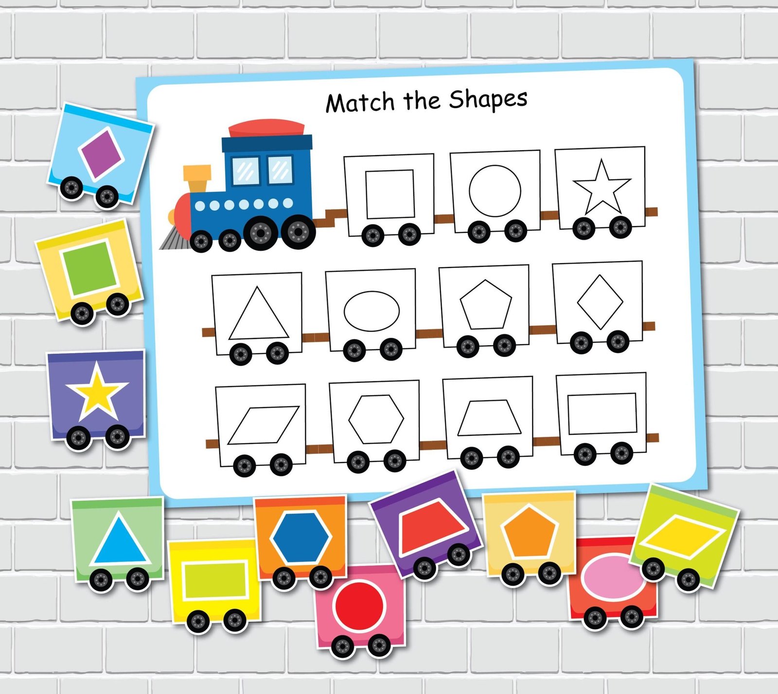 Train Shapes Matching Activity for Toddlers and Preschoolers. An engaging and colorful activity to help kids learn Shapes.