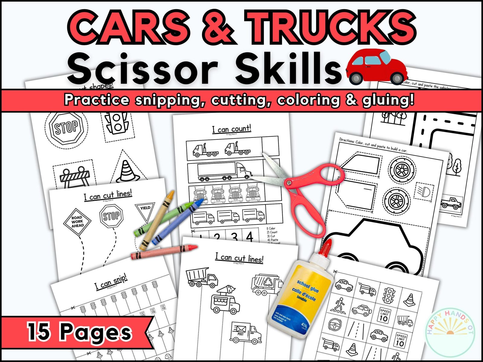 CARS & TRUCKS 15 PAGE SCISSOR SKILLS PDF INCLUDES: