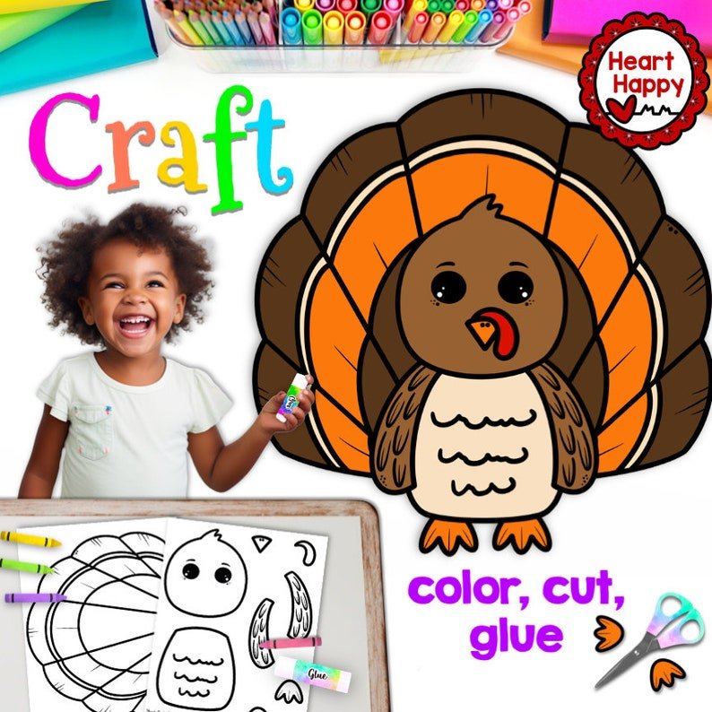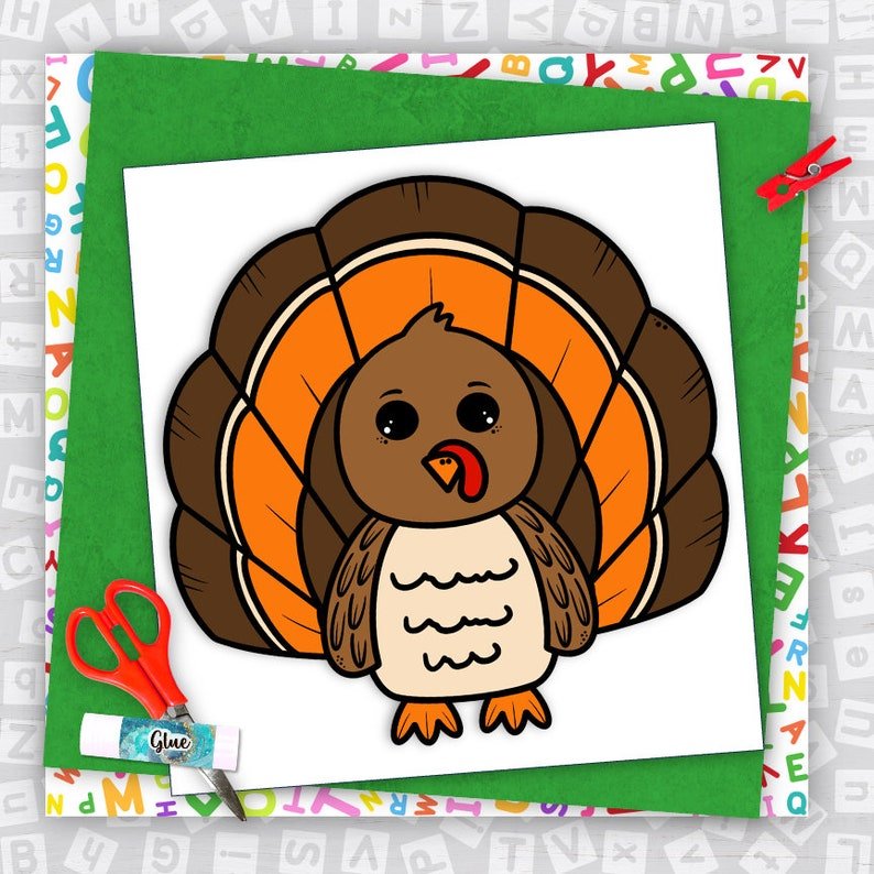 This cute Turkey Craft is LOW PREP – Just print, color, cut, glue! Great for fall, Thanksgiving, letter t, and more!