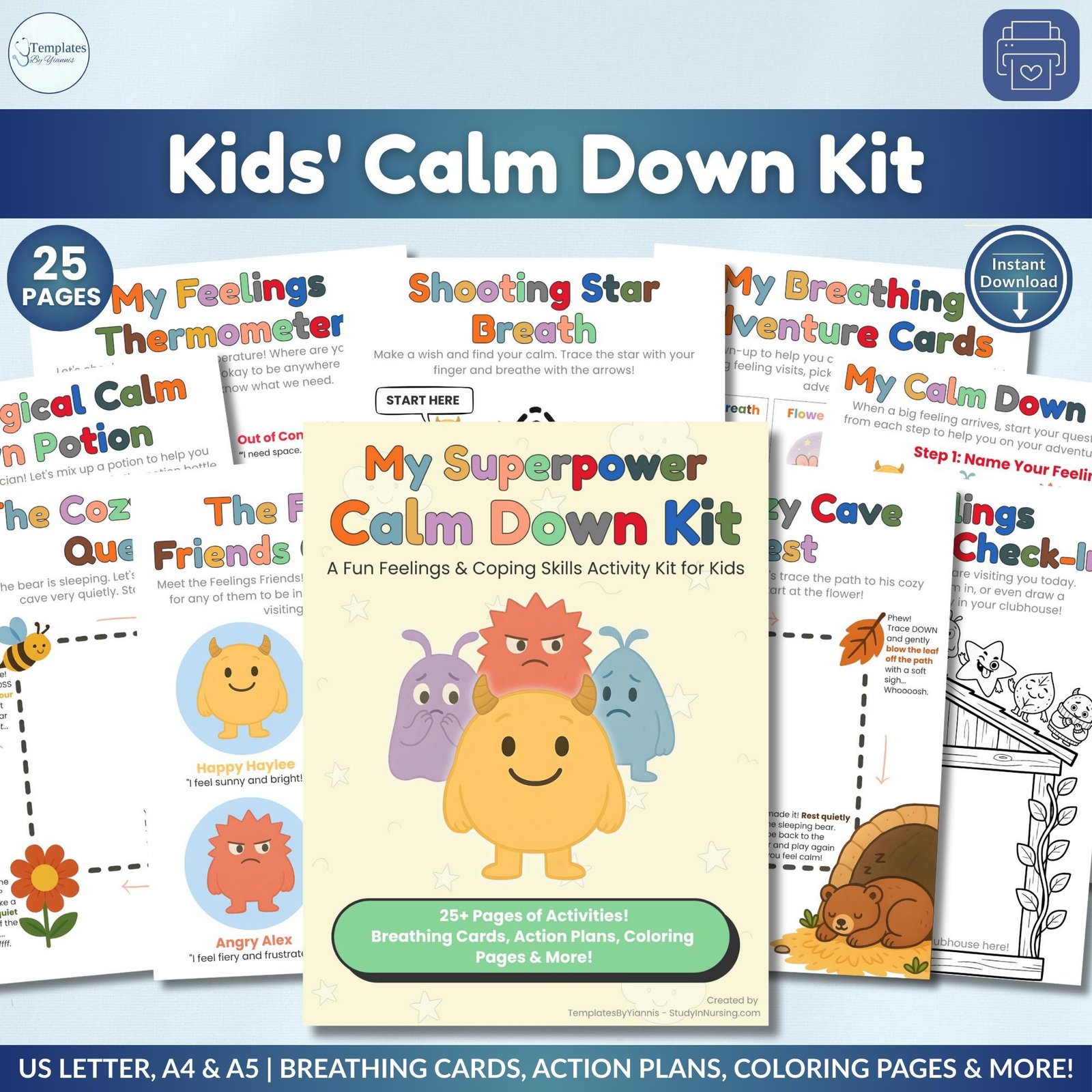 Ultimate Kids Emotional Regulation Bundle: Calm Down Corner Kit, 120 Emotion Flashcards & Polyvagal Workbook | SEL Learning Tools