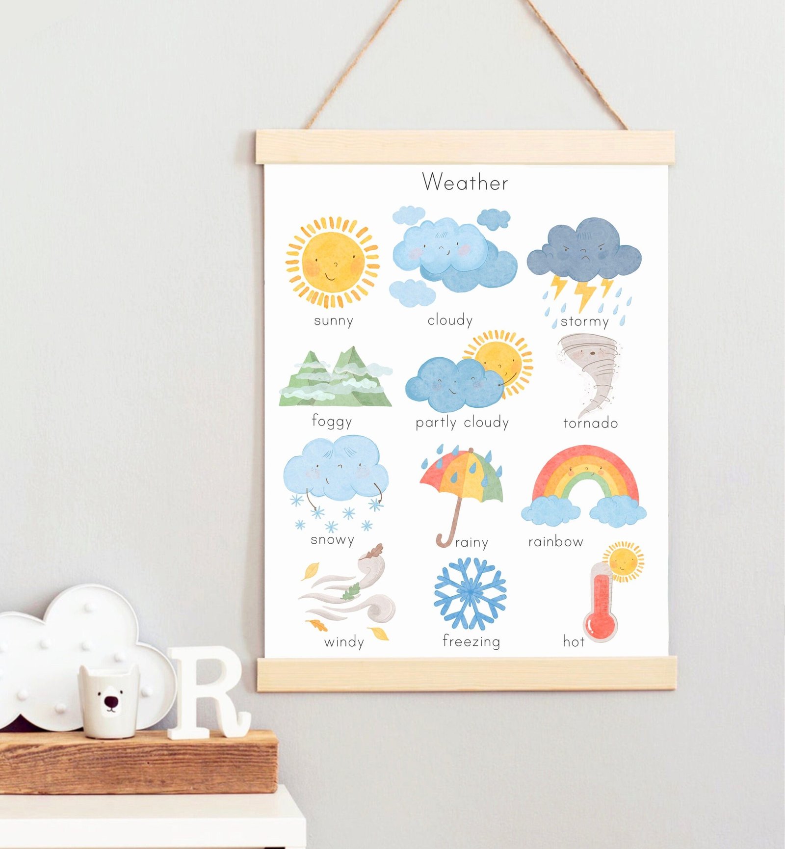 Weather Chart for Kids Homeschool Watercolor Weather Unit Poster for Toddlers Educational Playroom Wall Art Preschool Downloadable Prints