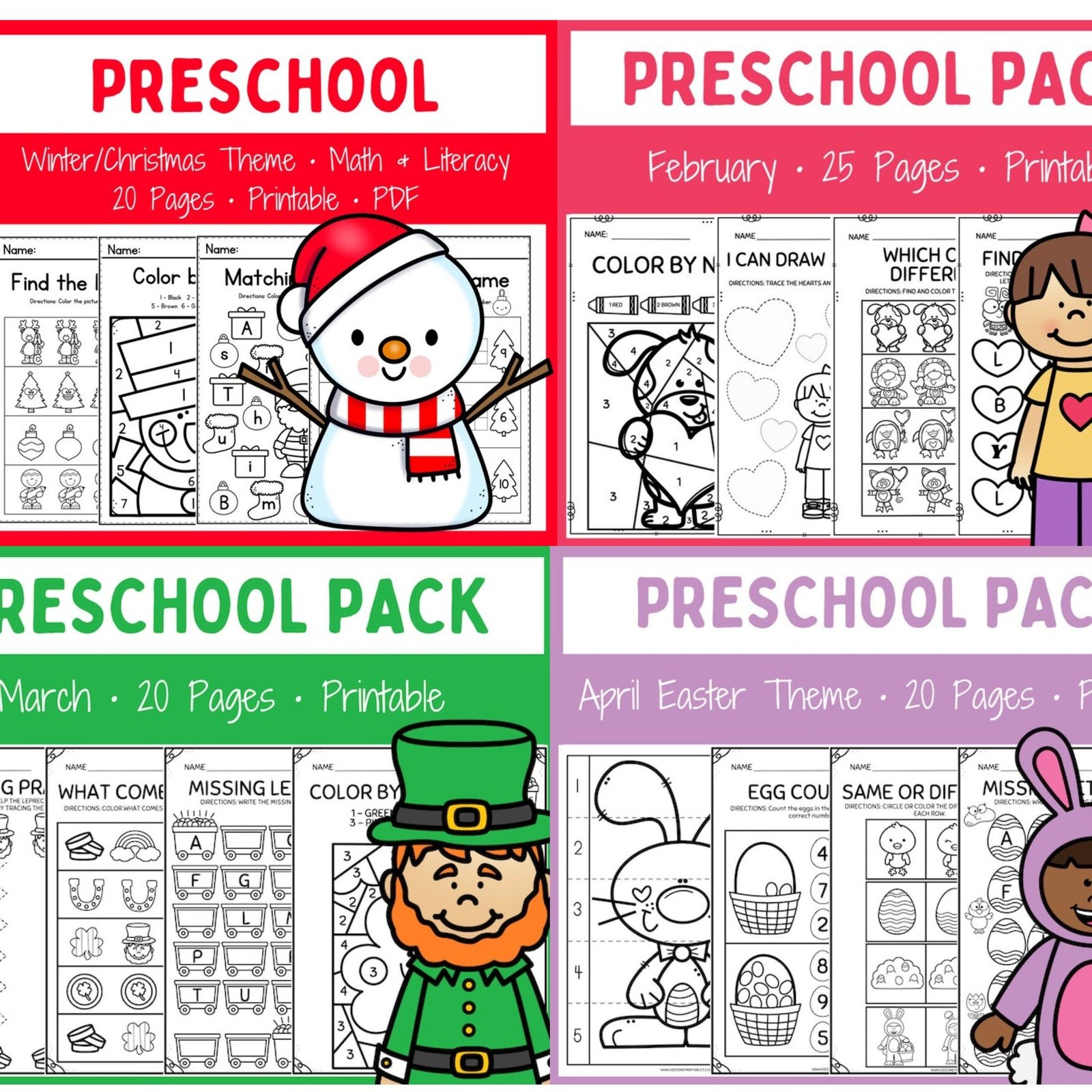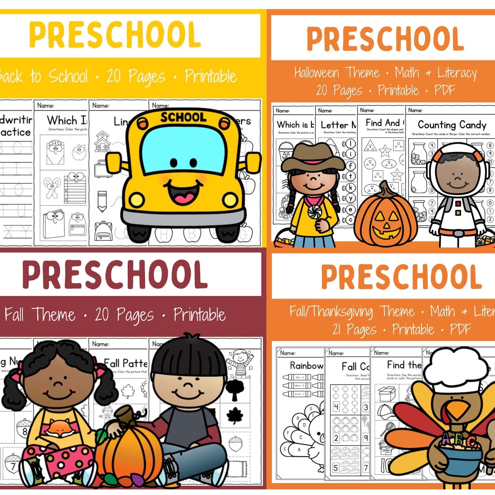 Worksheet Bundle – Printable – Preschool – Instant Download – No prep – Math – Language Arts – Digital Download