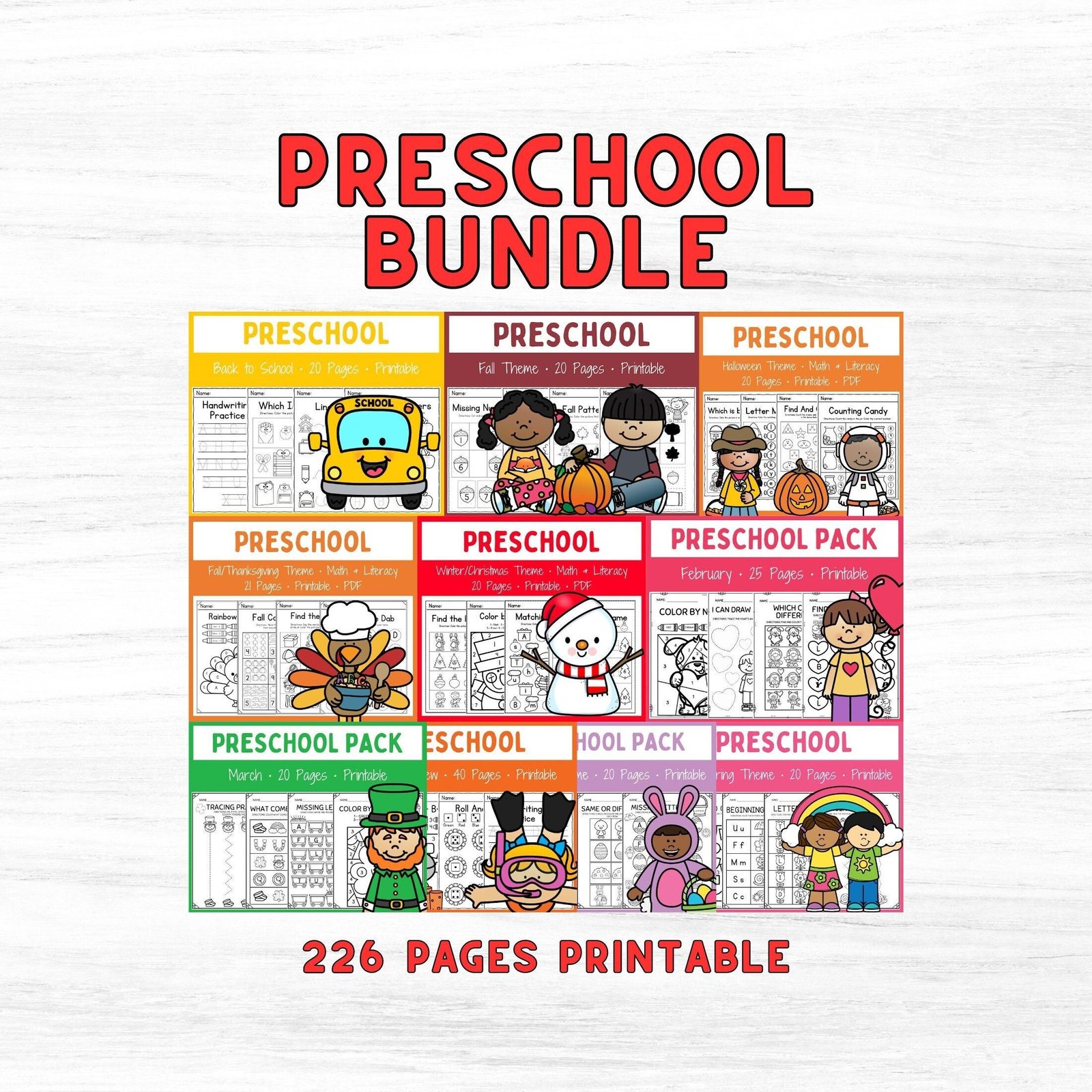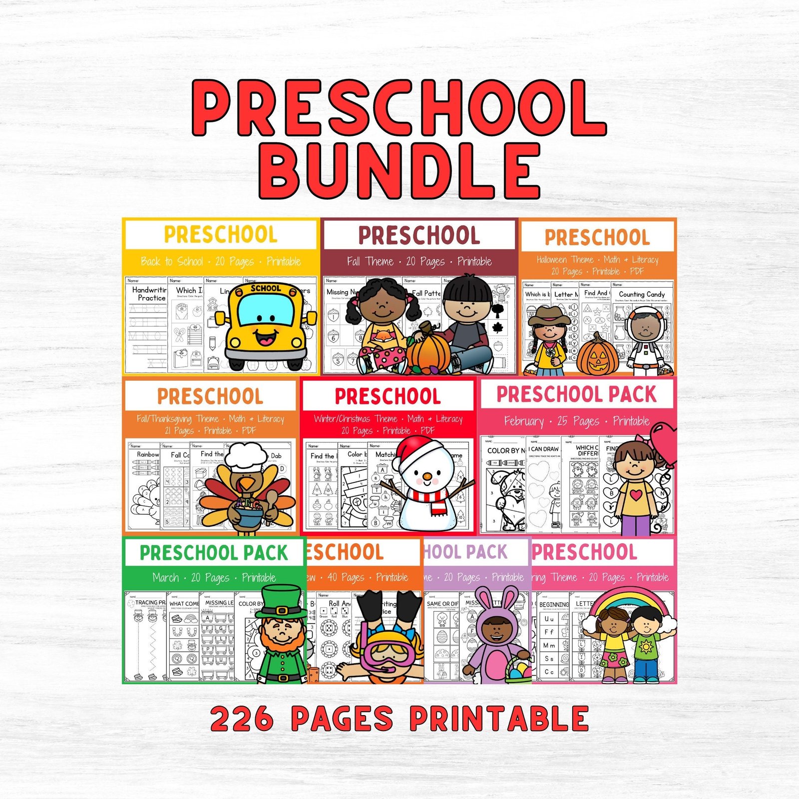 This bundle of preschool worksheets include 226 pages. Included is 10 of my individual themed preschool bundles.